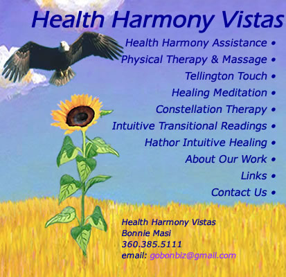 Health Harmony Vistas offers many aspects of healing and awakening – with times as erratic and shifty as they are now, many of us are being called on to seek and use more spiritual paths. There’s a need for us to connect and expand the light energy. There are many paths and healing techniques - we are all different so have diverse journeys here on Earth. Thank you for visiting our site, follow the links to explore our offering. |